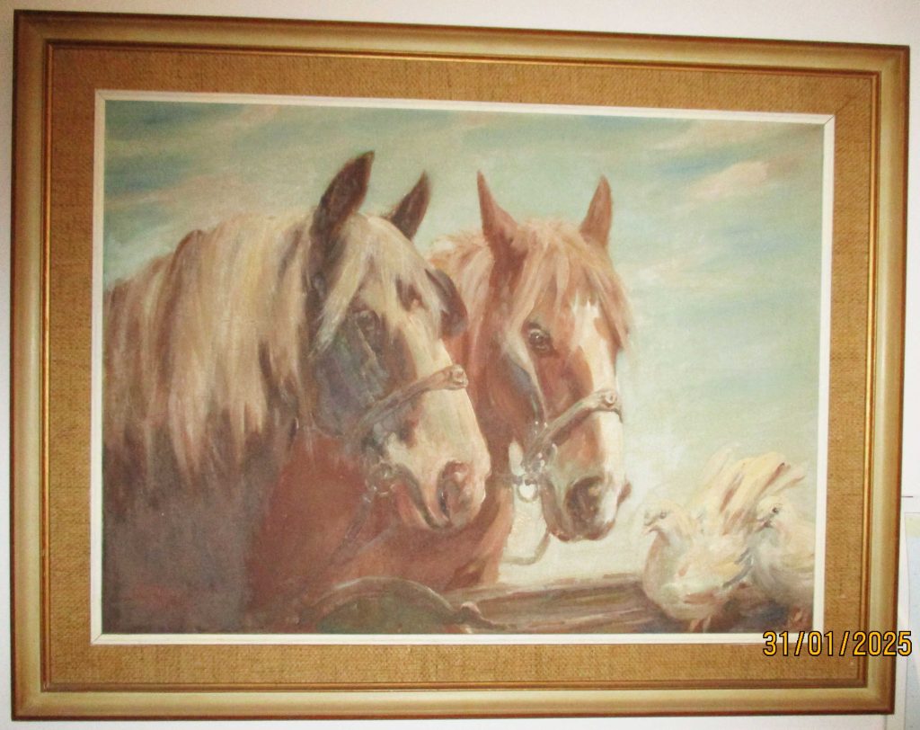His painting is of two draft horses heads using Barney as a model for both. Quite a departure from his usual landscape and still life works.